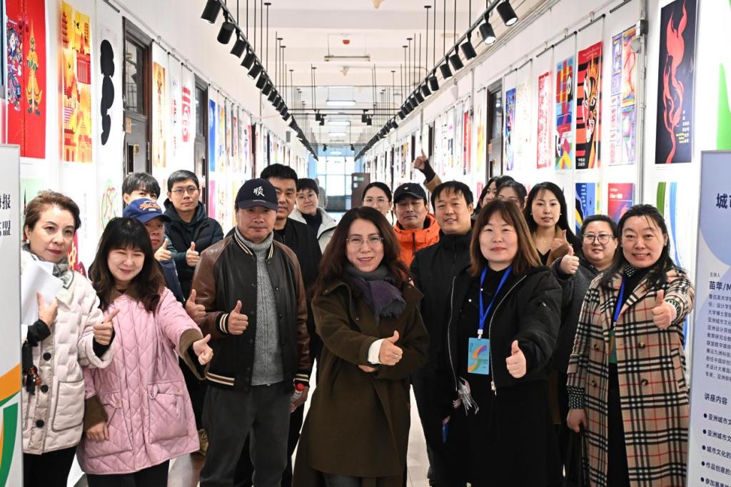 开幕式结束后,苗苹博士为现场师生带来了一场精彩的学术讲座。她以展出的代表性作品为案例,从图形构成、文字设计等视觉语言出发,深入剖析了城市海报的创作范式,并结合手绘、摄影等多种艺术手段,阐释了当代海报在文化表达与媒介融合中的创新路径。
