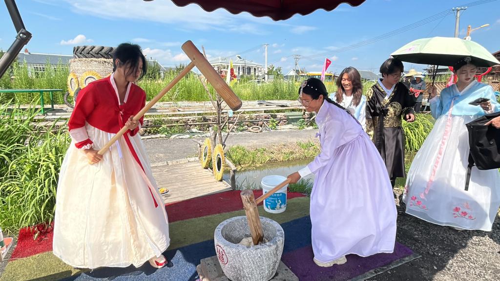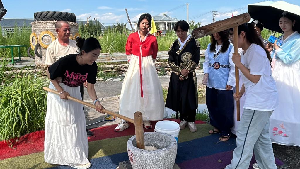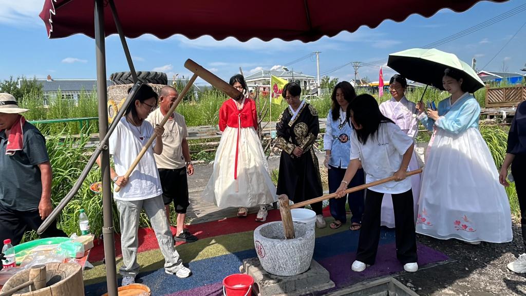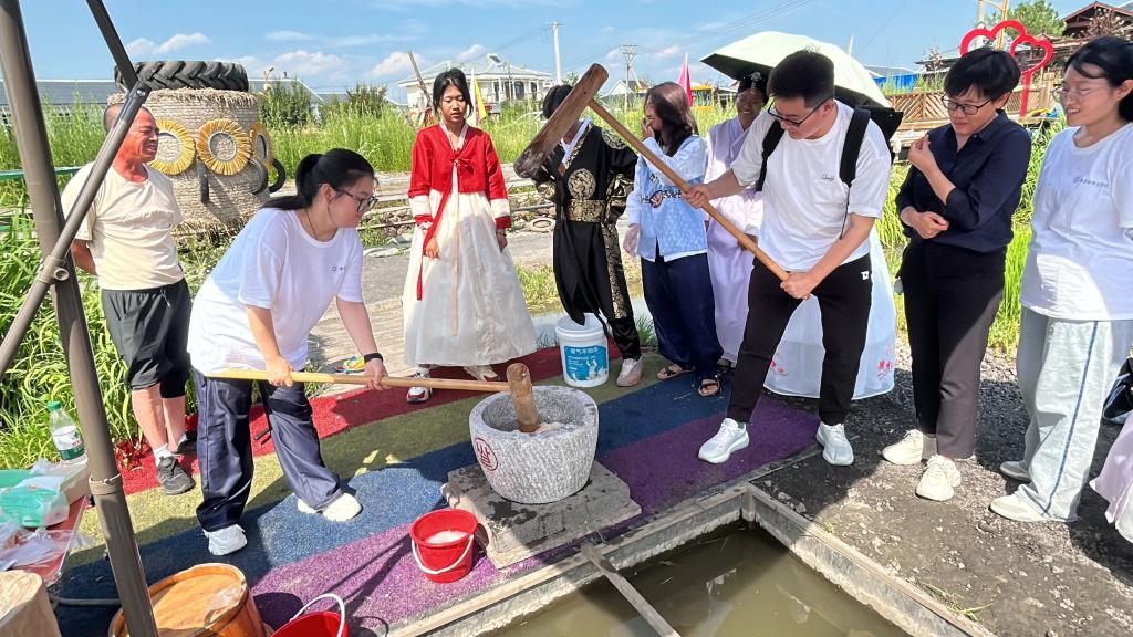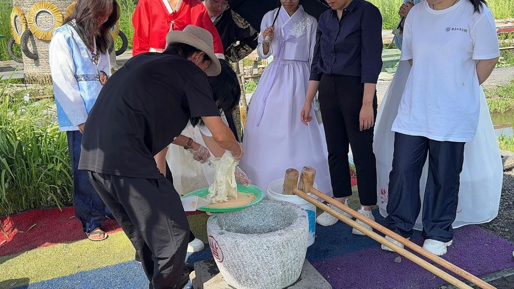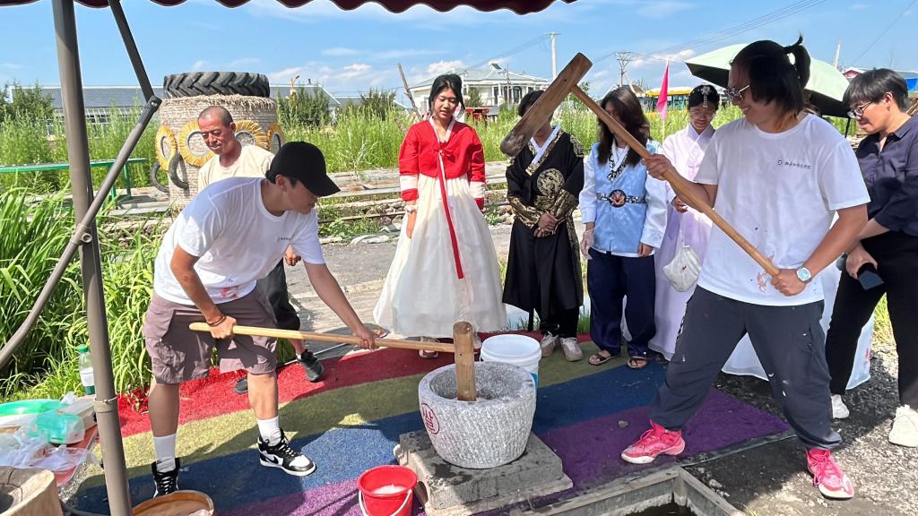 为深入了解朝鲜族特色文化,促进各民族文化交流互鉴,7月13日,美术与设计学院“星光美愿”志愿者服务队走进朝鲜族特色村寨中兴村,开展歌舞互学、打糕制作等非遗文化体验活动。本次活动由辅导员罗忆南、王兆宇、徐航带队。