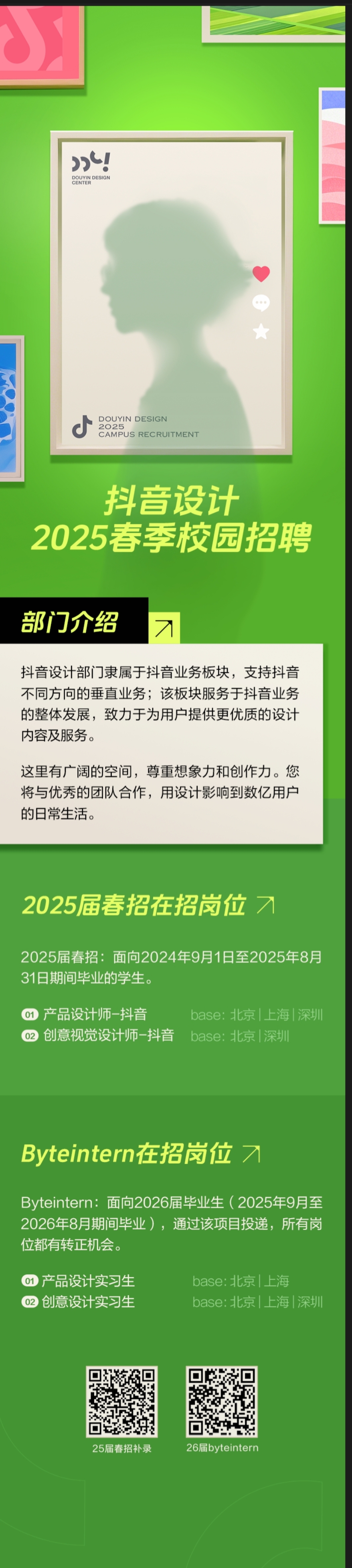 抖音设计2025春季校园招聘,设计师及设计实习生岗位等...